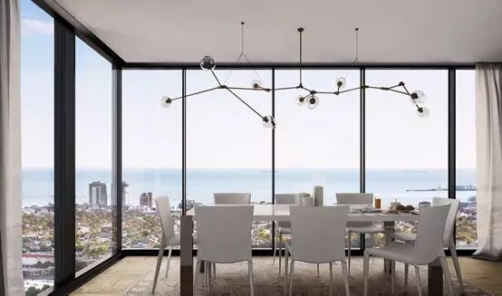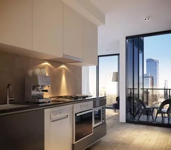户型位于55层以上,朝向西南,可以看到Dockland海景和Yarra River亚拉河